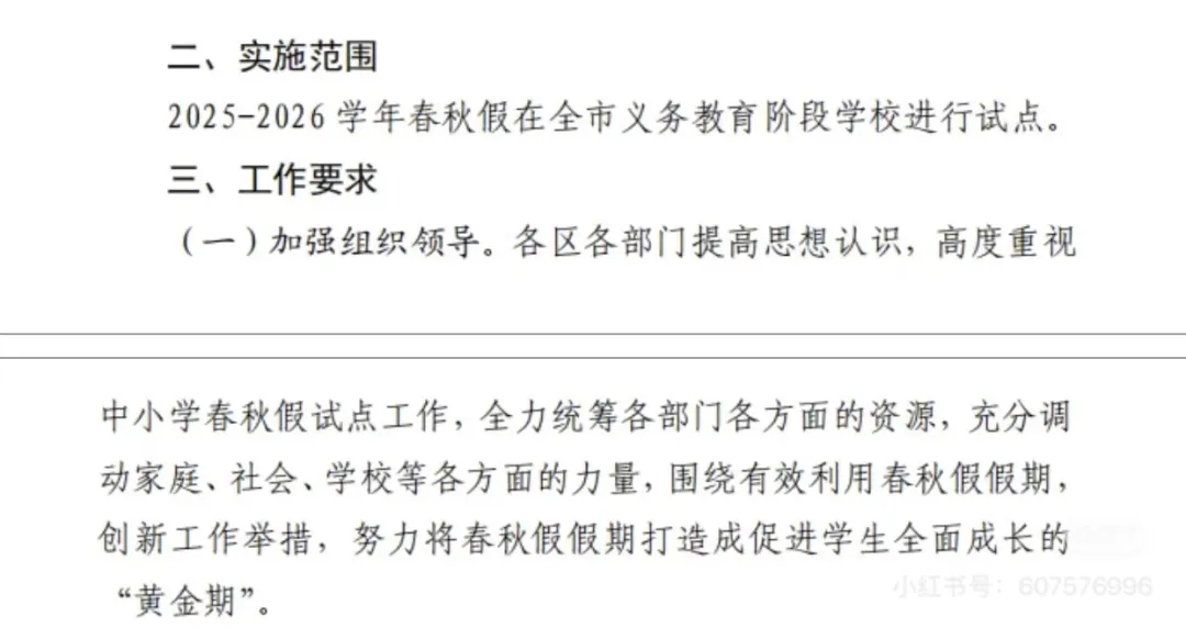 从2013年《国民旅游休闲纲要》首次提出地方探索春秋假,到2019年发改委等九部门明确要求制定春秋假办法,再到2025年《提振消费专项行动方案》中专门写入春秋假,中小学春秋假的试点有一个重要的意义: