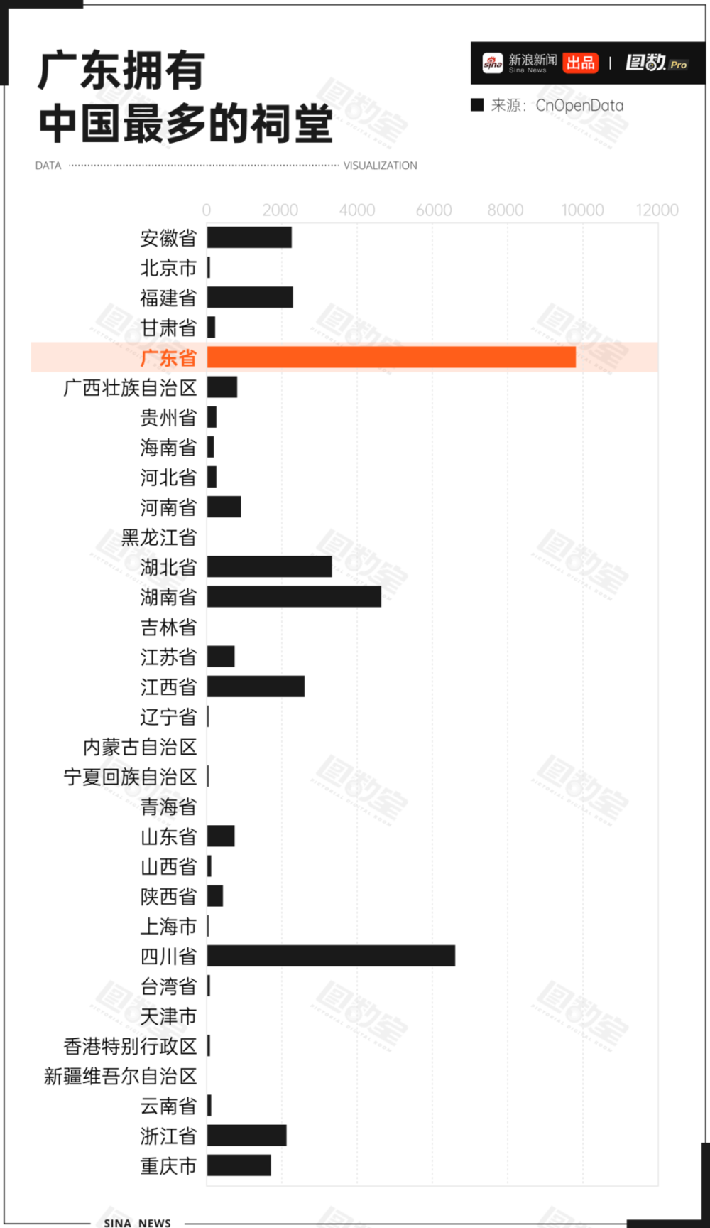 宗祠是“供设祖先的神主牌位、举行祭祖活动的场所,又是从事家族宣传、执行族规家法、议事宴饮”的地方。广东省的生育密码,就藏在祠堂的牌匾下:广东拥有全国最多的祠堂。