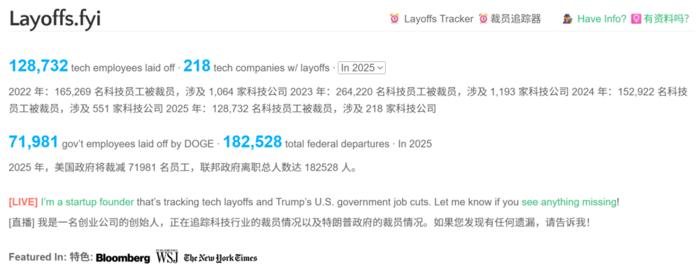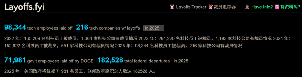 据追踪科技行业失业数据的网站Layoffs.fyi统计,今年截至前天整个科技行业被裁员工约为98000人;