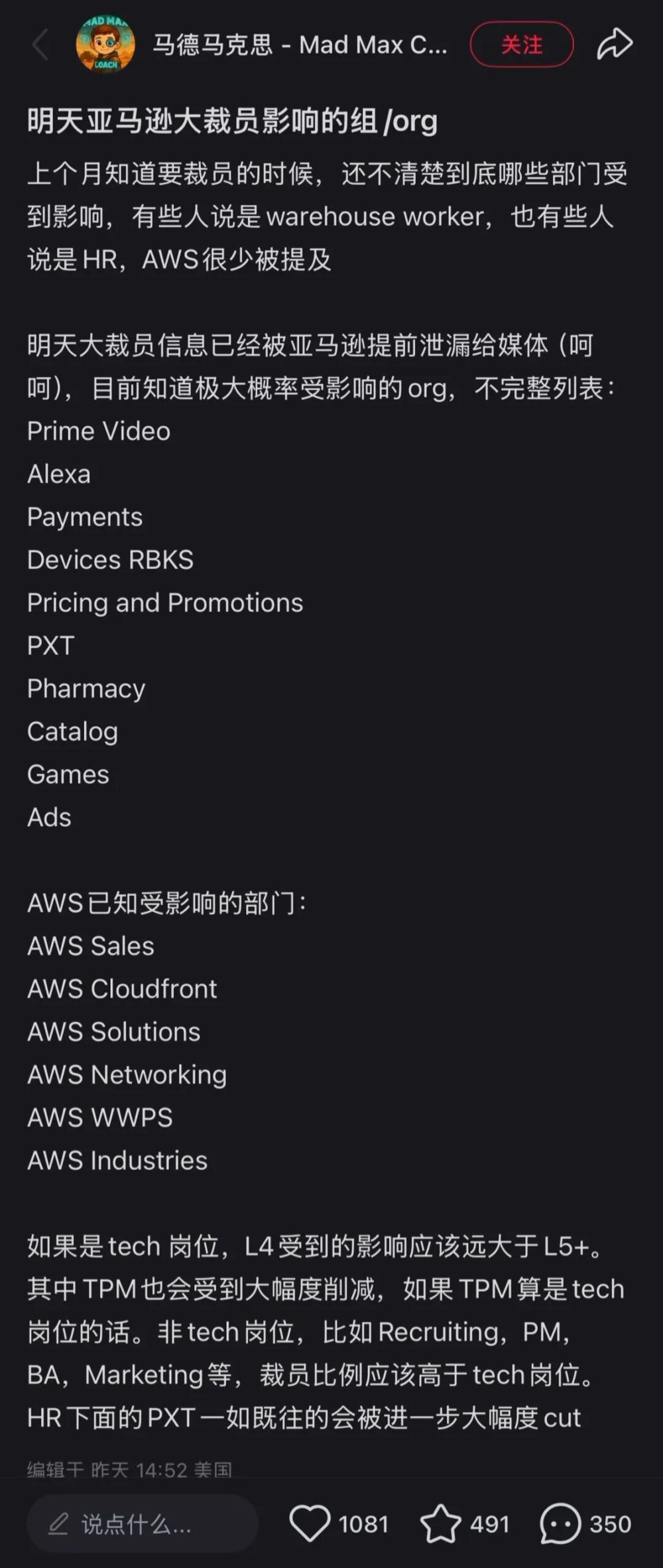 亚马逊内部甚至流传着一句玩笑话:“这次裁员连L7都保不住。”