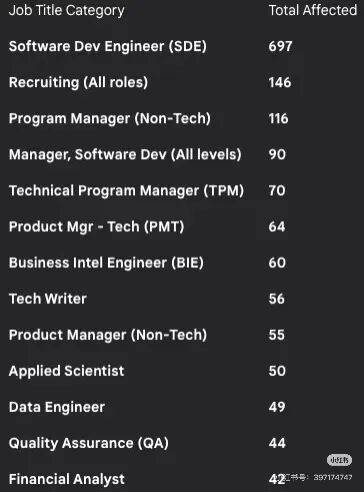 西雅图总部部分被裁员工的部门如下,AWS未能幸免: