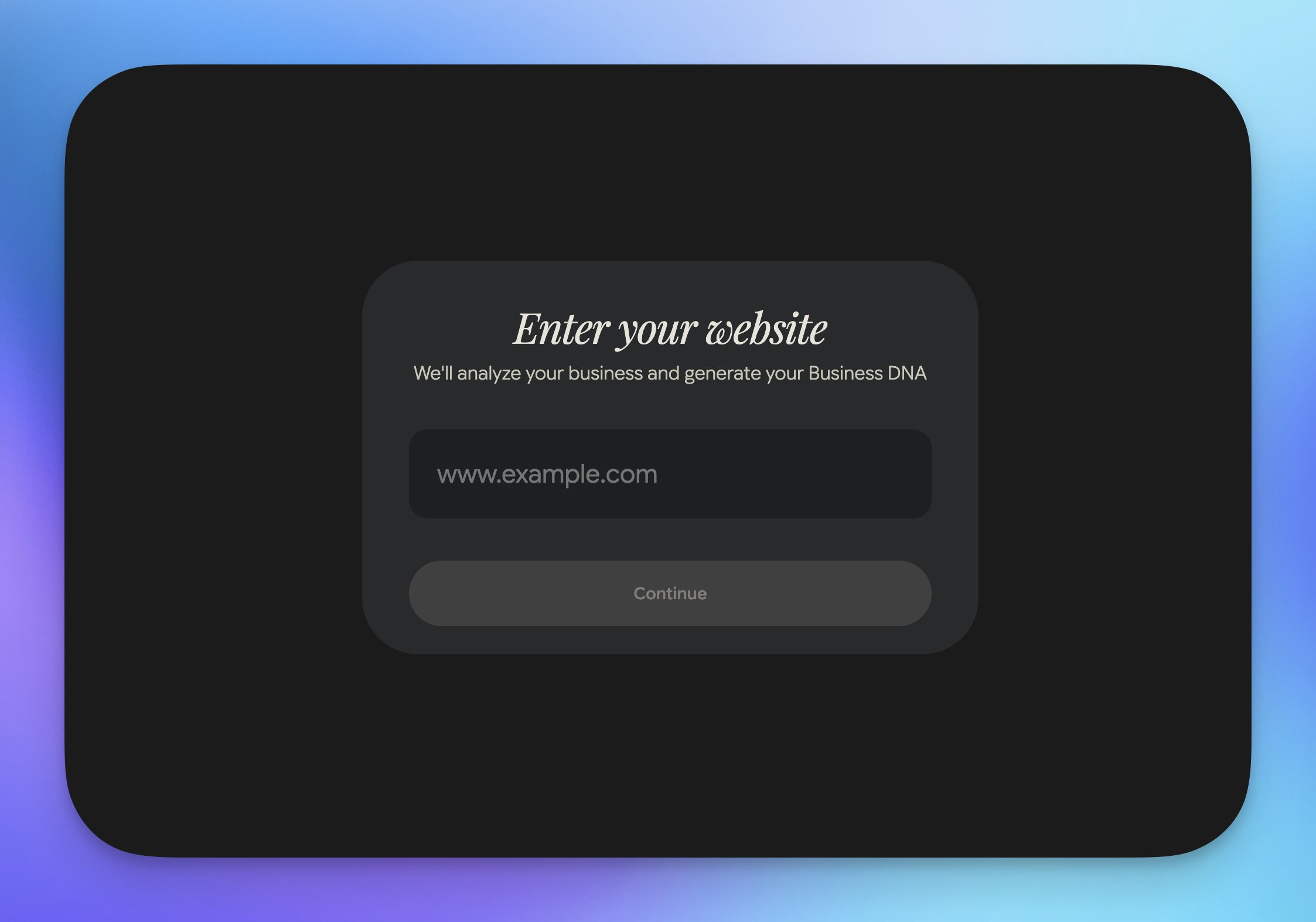 在你进到产品里之后只有一个非常简洁的网址输入框,直接输入你的官网地址点击 Continue 就行。
