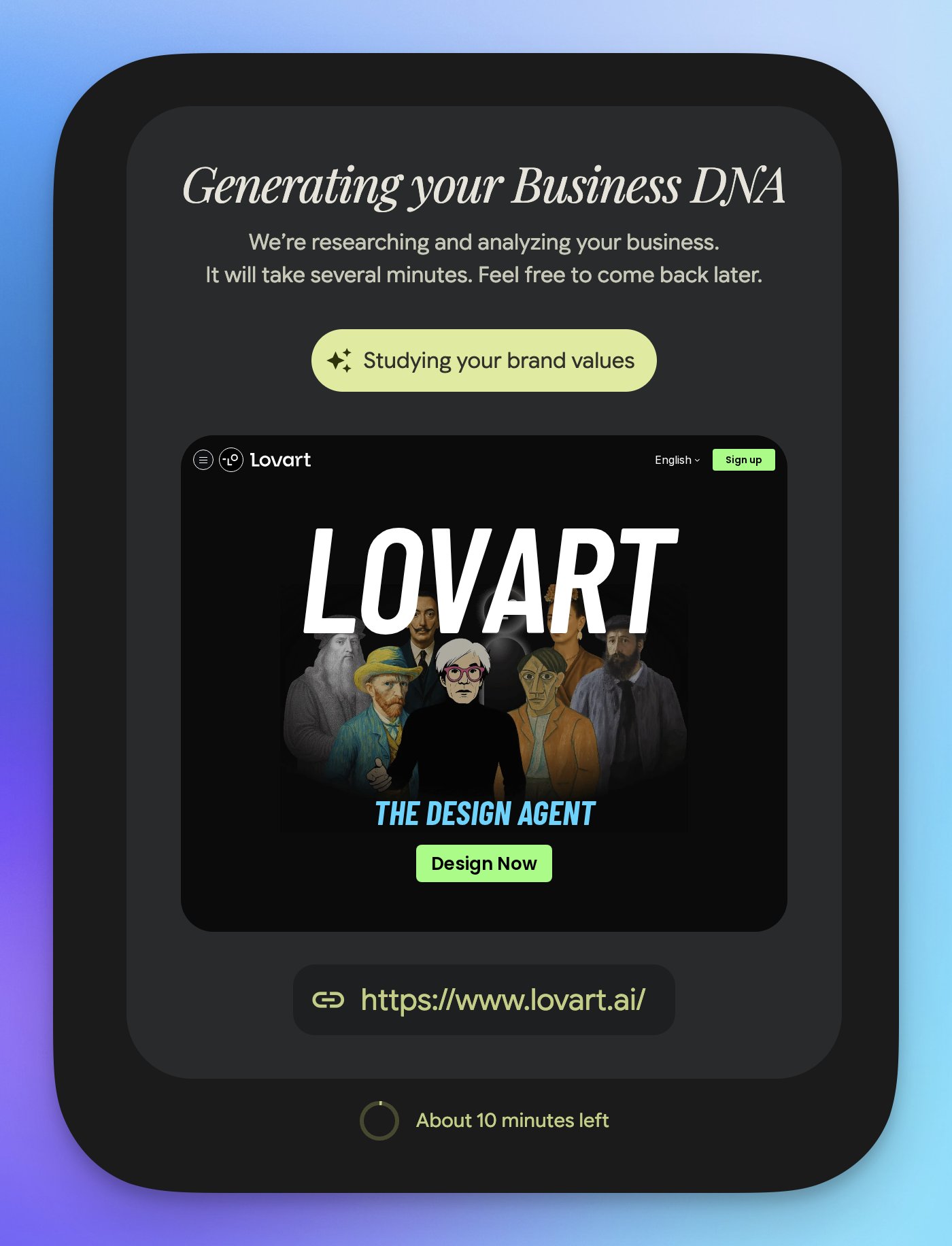 稍微等待一会之后,他就会根据从网站爬取的信息,帮你创建一个关于这个产品的品牌 DNA 卡片。