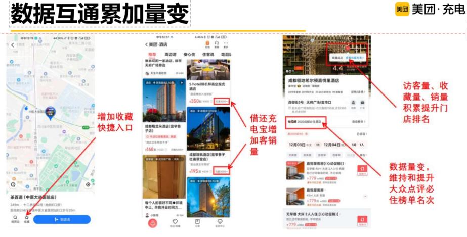所谓的推流,是指放了充电宝的商铺,可以增加在美团上的曝光度和销量,酒店可以增加 hos 评分( 酒店运营能力评估 )。