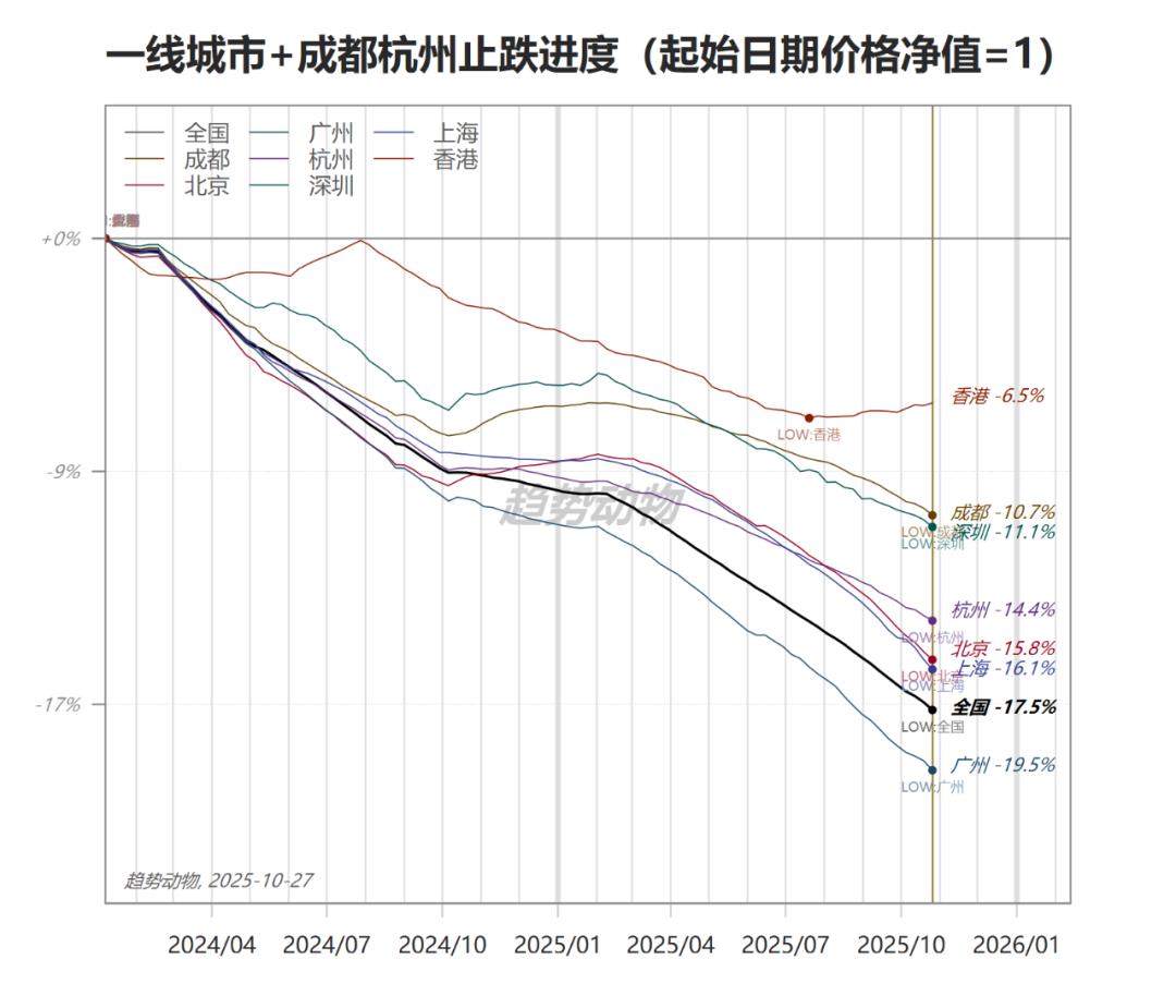 注意看上图,去年10月份之后,核心城市房价一度是稳住的。