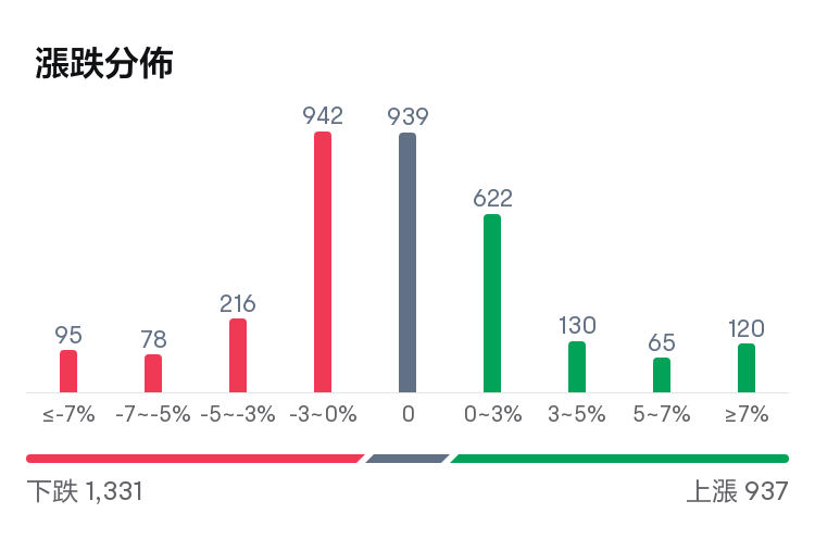 截至收盘,港股上涨937只,下跌1331只,收平939只。