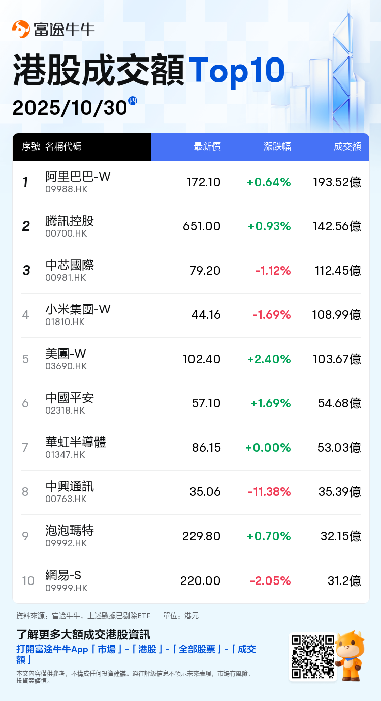 九毛九 (09922.HK)跌超7%创上市新低,同店恢复节奏偏慢,三季度主要品牌同店仍承压。