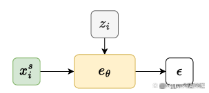 去噪网络 eθ 根据 zi 和 xsi 预测噪声 ϵ