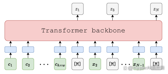 另外,因为 latent tokens 是连续向量,传统分类头无法建模其分布,因此在 Transformer 输出后接入扩散模型头(小型 MLP 实现),用以预测掩码的 latent tokens 分布(如下图所示)。