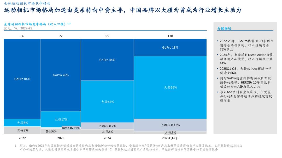 据悉,截至2025年前三季度,大疆运动相机的全球份额已达66%,以绝对优势稳坐行业头部。三年之间,格局彻底反转。