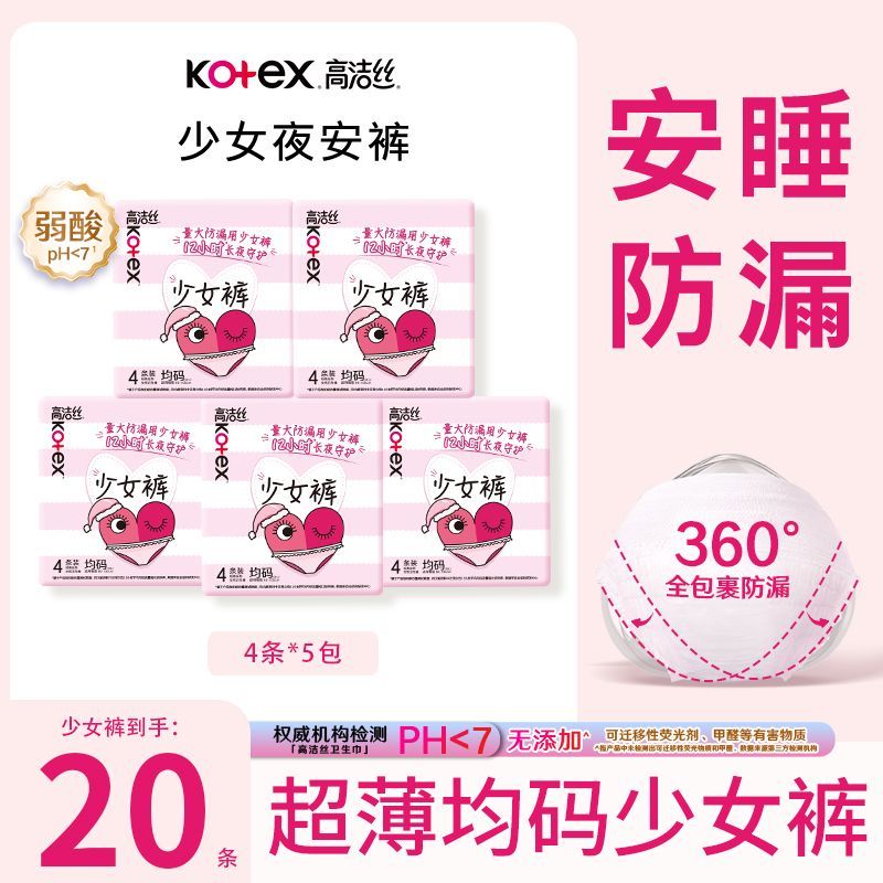 kotex 高洁丝 安睡裤超薄均码少女裤防漏裤型安心裤安全裤姨妈学生一整箱[经销商] 拼多多[产品售价] ¥19.9元进入购买[#zolsplit_ecb电商推广区域分隔符结束#]