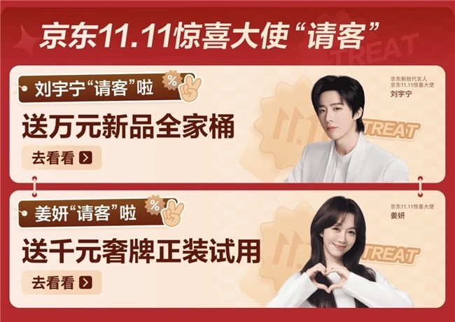 而且京东邀请来的“请客”阵容也十分值得期待。其中,京东新锐代言人、京东11.11惊喜大使刘宇宁将“请客”为消费者送出新品万元全家桶,京东11.11惊喜大使姜妍则将“请客”送出千元奢牌正装试用,此外还有更多明星嘉宾、品牌大佬及上百家品牌的“请客”福利正在持续加码。京东11.11“请客”活动即将开启,好吃、好玩、好用的通通都请,等你来做客!即刻上京东APP搜索“京东请客”,提前预约心仪好礼和福利,10月31日10点整点开抢,惊喜不容错过。值得一提的是,10月30日晚8点起,京东11.11“百亿补贴日”也将火热开启,连续3天,疯狂加补,直接降价不凑单!海量低价好物、惊喜福利当送不停。又好又便宜的11.11,只在京东!