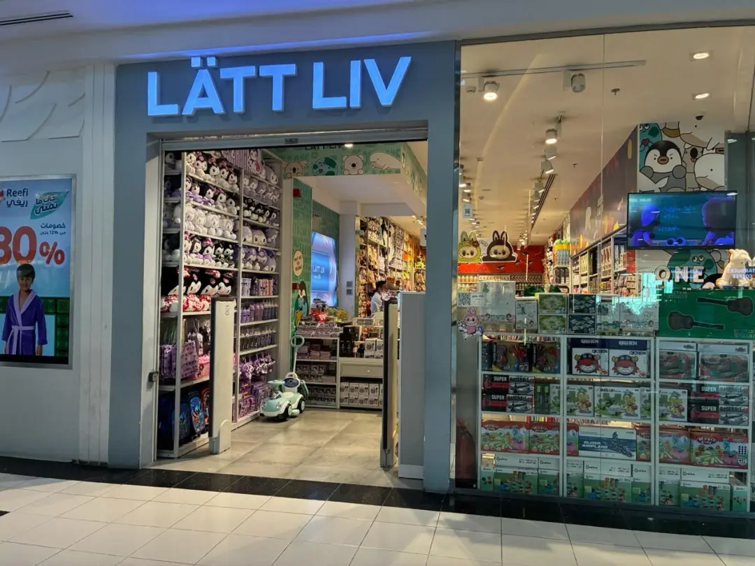 在Riyadh Gallery Mall中,一家名为LÄTT LIV百货商店吸引了我们的注意,它售卖玩具、文具、生活用品一类的小商品,但不少商品上依旧保留着中文的标签。后来我们才知道LÄTT LIV生活无忧是一个源于广东的零售品牌,知名度不比名创优品,但截至2021年,他们的开店总数也已经突破千家,覆盖东南亚、中东、美洲、欧洲、非洲市场。