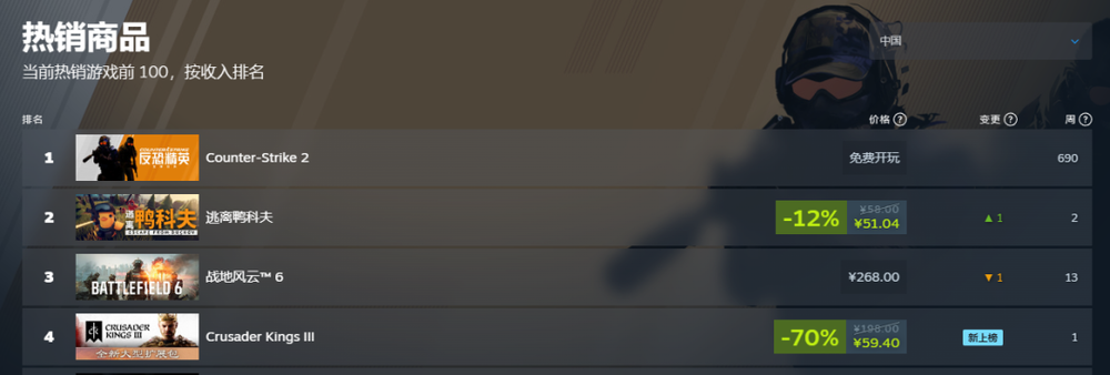 作为《十字军之王3》上线以来规模最大的大型内容扩展包,很快就把《CK3》这个已经发售五年的老游戏,重新送回了Steam畅销榜前列。其中,国区拿到了全球最好的成绩,排在第4名。