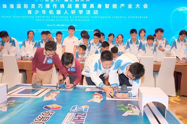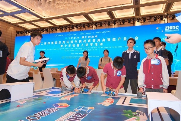 大赛的另一大亮点,是创新加入青少年赛项,采用“培训+研学+竞赛”的模式,汇聚来自大湾区的63支青少年团队。参赛团队围绕机器人编程、组装、协同操作等环节展开较量,精彩画面层出不穷,最终香洲区第十七小学的“十七小队”、广州黄花小学的“广州代表队”和珠海市文园中学的“文园二队”分别斩获比赛前三名,展现出中国青少年活跃的创新思维和具身智能产业蓬勃发展的新生力量。