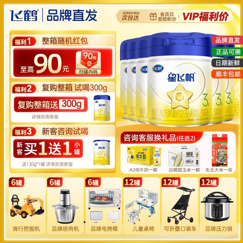 飞鹤星飞帆3段婴幼儿奶粉700克6罐装专为1-3岁宝宝研发科学配方贴近母乳营养更易吸收全面支持宝宝智力和免疫力发展采用优质奶源富含OPO结构脂、DHA、ARA及多种维生素矿物质助力宝宝健康成长每罐奶粉均经过严格质量检测品质有保障现拼多多限时特惠原价1200元现在到手价仅需1080元直降120元降幅达10%还低于上次爆料价1199.99元性价比超高囤货正当时喜欢的家长千万别错过抓紧下单为宝宝储备安心好营养