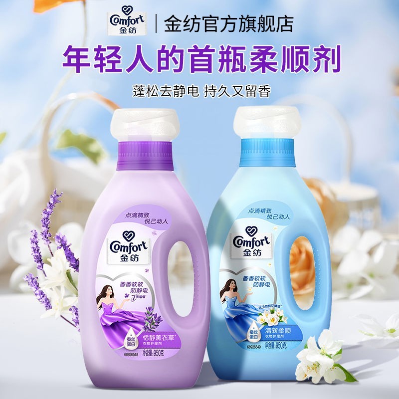 Comfort金纺柔顺剂薰衣草香水味衣物护理持久留香补充装全新尝鲜上市,蕴含温和护衣配方搭配清新淡雅的薰衣草香调,深层滋养纤维,让衣物柔软蓬松不易起静电,穿着更舒适,香味持久萦绕衣物长达数日,带来全天候的优雅气息,补充装设计环保又实惠,方便家庭日常使用。