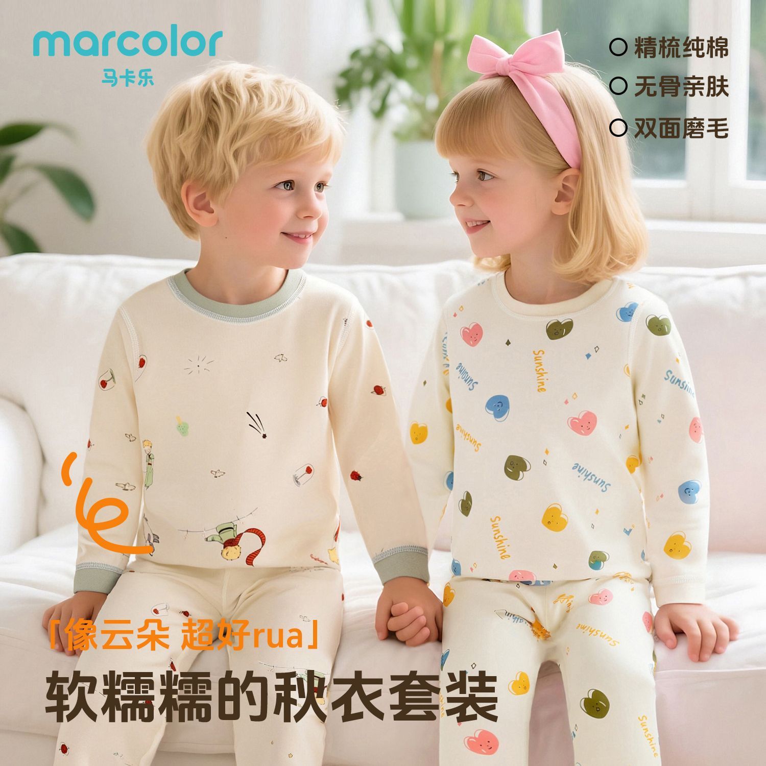 马卡乐儿童睡衣纯棉中小童打底内衣套装,专为秋冬季设计,采用优质纯棉面料,柔软亲肤,透气舒适,给宝宝一整晚的温暖呵护。立体剪裁贴合身形,适合男女童日常居家穿着或作为保暖内搭,经典简约款式耐看耐穿。