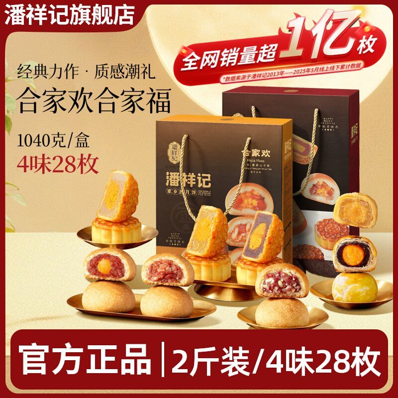 潘祥记月饼礼盒重磅来袭,1075克超值大容量包含29枚精选口味,一次满足全家味蕾需求,经典云腿、香浓蛋黄、传统伍仁、绵密莲蓉、细腻豆沙五种口味齐集,口感丰富层次分明,外皮酥软内馅饱满,每一口都是中秋的仪式感。