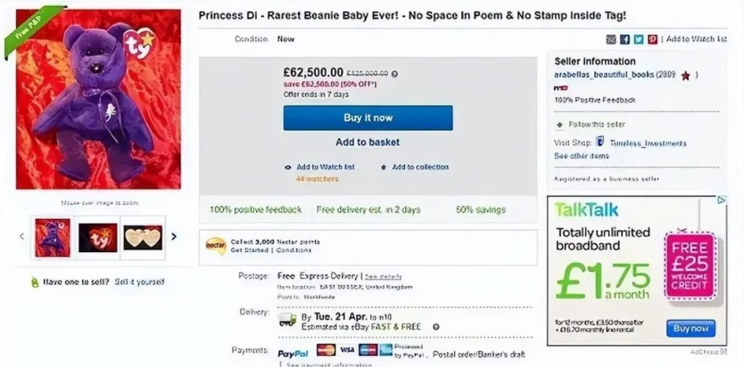 稀缺与个性化结合,引发了一批收藏者入场,而于1995年成立的eBay成为泡沫催化剂,Beanie Babies是最早在eBay上形成庞大二级市场的商品之一,一些退市款式价格从几美元涨到几百甚至上千美元。