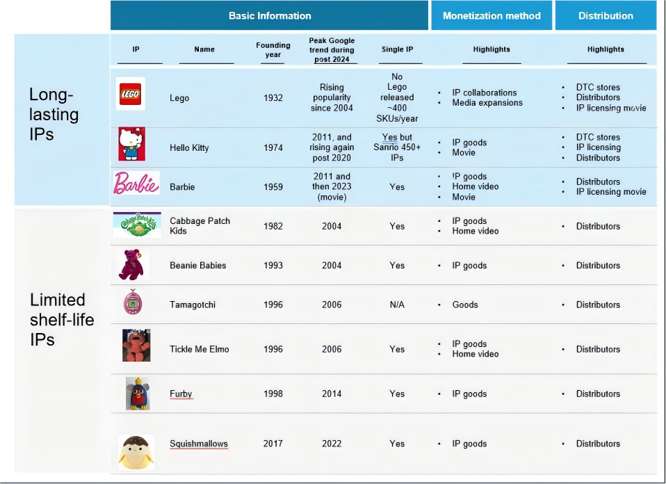 Labubu看似与Beanie Babies走出相似的爆发速度,但主要依托线下开店铺货的速度,对IP的曝光控制能力更强,对销售节奏的掌握能力更强,再加上不同层次的IP社群,有中国这样的一个高速稳健且空间巨大的基地市场,销售不太可能出现Beanie Babies那种盛极而衰的抛物线走势。
