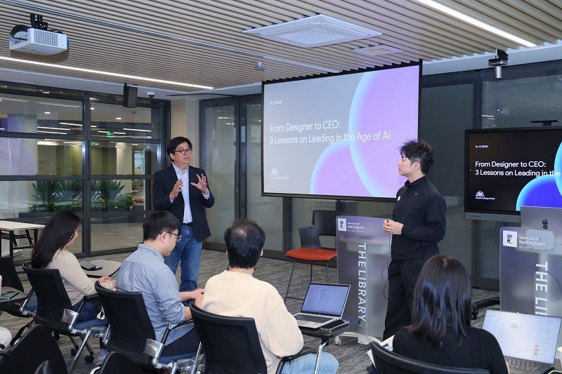 2025-11-03 11:40:19 作者:狼叫兽【中国·宁波|2025年10月27日】在人工智能重新定义创造力与判断力的时代,Chance AI 创始人兼首席执行官曾熙博士(Dr. Xi Zeng) 受邀于诺丁汉大学商学院(University of Nottingham Business School) 发表题为 《From Designer to CEO: Three Lessons on Leading in the Age of AI》 的专题演讲。此次分享吸引了来自商学、设计、计算机科学、人文等多个学科的学生与教职人员参加。