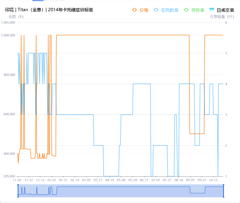 (印花“泰坦”的近一年价格走势图,图源:SteamDT)