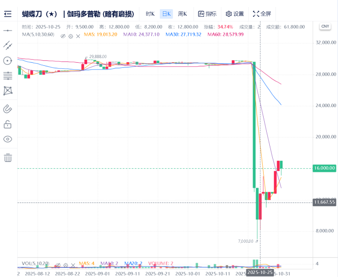 短短一句话。我盯着它,反复看了三遍。脑子里“嗡”的一声。玩了五年CS,我看着Valve对饰品系统修修补补,每一次市场的波动都像潮汐,涨上来了,迟早还会再退去。我几乎是下意识地打开了久违的Buff平台,那把曾让我魂牵梦萦的绿宝石蝴蝶刀,从曾经遥不可及的三万二高峰,笔直地向下俯冲,定格在一万出头。