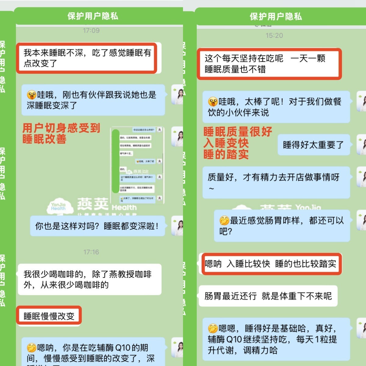 还有被失眠困扰了大半年的顾客反馈:“吃Brillowel辅酶Q10大概三周后,感觉睡眠质量有了不少改善,深睡眠情况好了很多,现在白天就算忙一整天也不会像以前那样累,整个人状态感觉不一样了!”也顾客更是惊喜地表示:“比较惊喜的是入睡速度,以前躺床上要翻来覆去一两个小时才能睡着,现在晚上有困意之后闭上眼睛几分钟就能入睡,这在以前是很难做到的。”