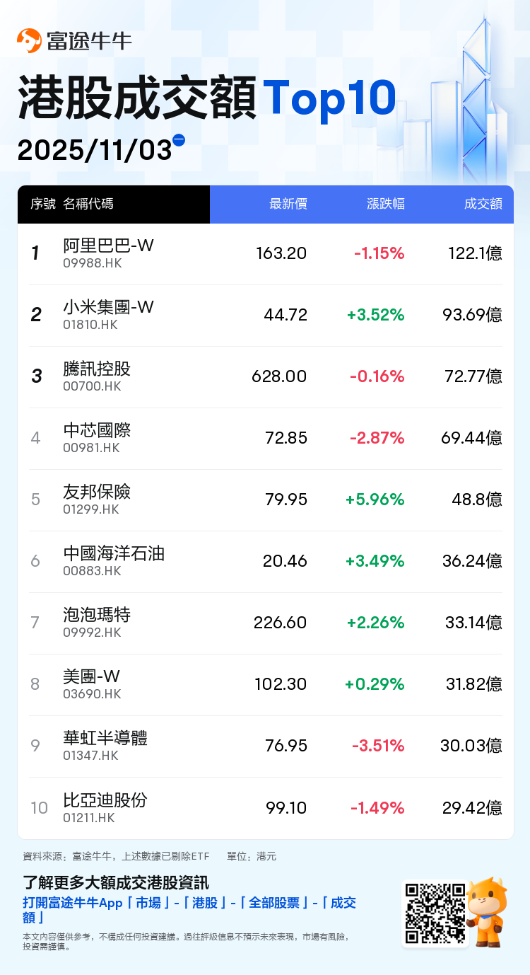 个股方面,大麦娱乐 (01060.HK)涨超5%,公司将于下周四发中期业绩,近期与澳门银河续签战略合作。