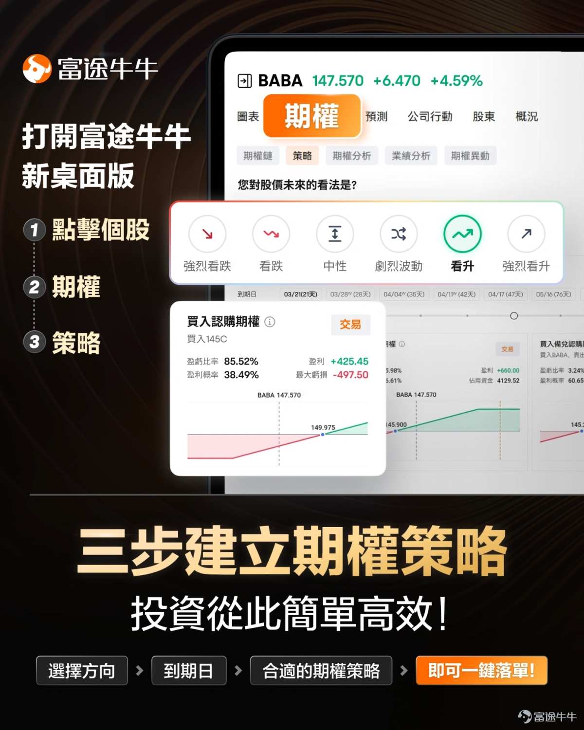 市况复杂多变,期权策略繁多,不知道如何选择?富途牛牛帮你三步建立期权策略,投资从此简单高效!