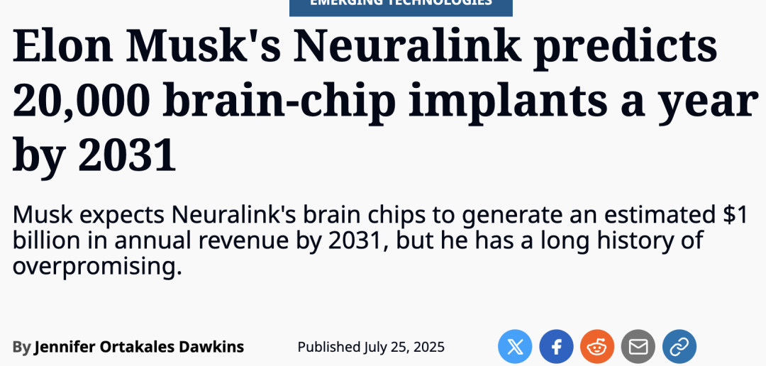 据报道,Neuralink的目标是,到2031年实现每年植入2万人,并实现年营收突破10亿美元。