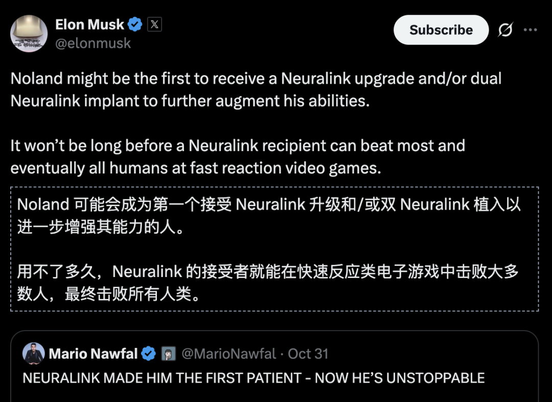为了进一步增强能力, Noland可能是第一个接受Neuralink升级,或植入双芯片的人。
