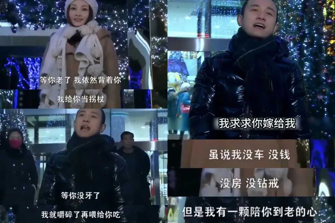 求婚时带着点自命不凡的语气声明自己是“四无人士”,“等你没牙了我嚼碎了喂你”一度成为当年爆款金句。