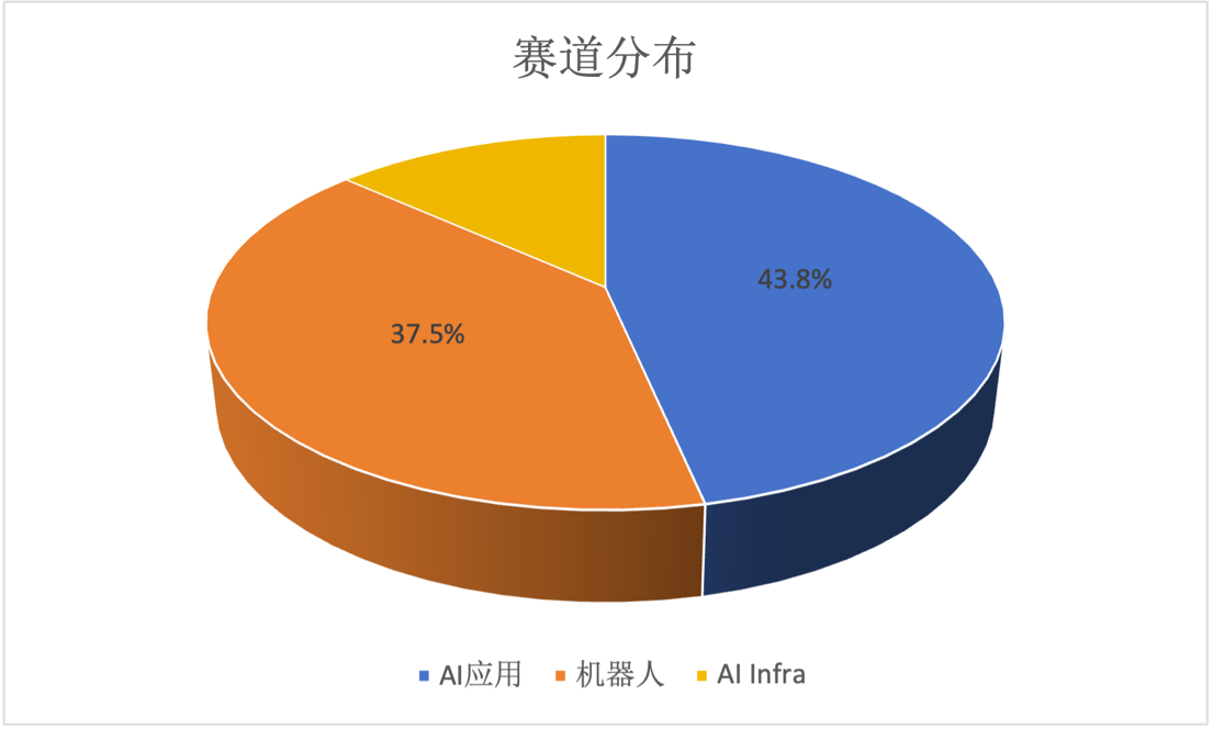 在我们的候选名单中,大部分是AI应用方向的创业者,占比为43.8%,其次是机器人行业创业者,占比为37.5%。