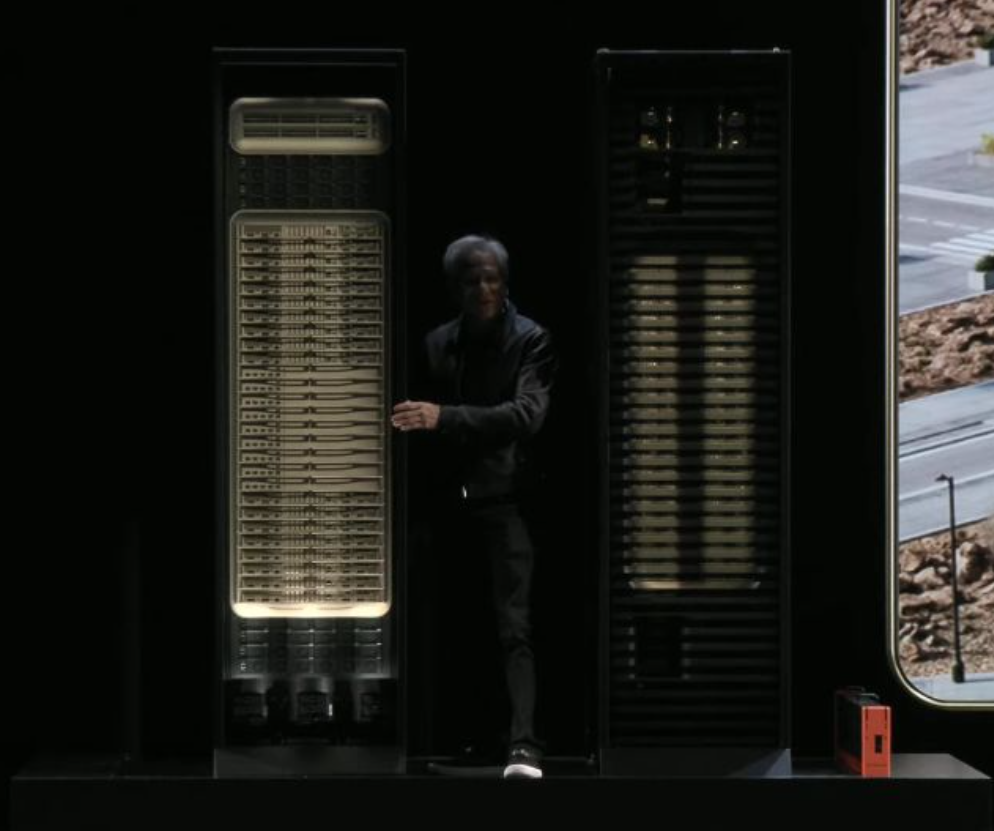 非常凑巧,英伟达CEO黄仁勋上周给投资者们展示了最新款的液冷机架,并表示单单1吉瓦的算力就需要8000个这样重达两吨的大家伙。
