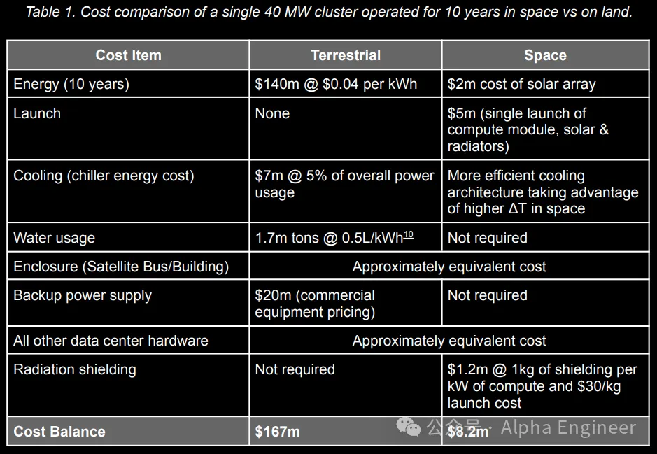 图:太空算力的成本结构,StarCloud,AlphaEngine