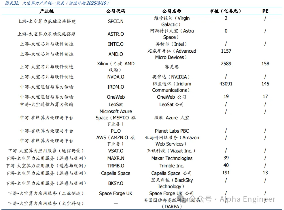 图:太空算力产业链公司一览表,国盛证券,AlphaEngine
