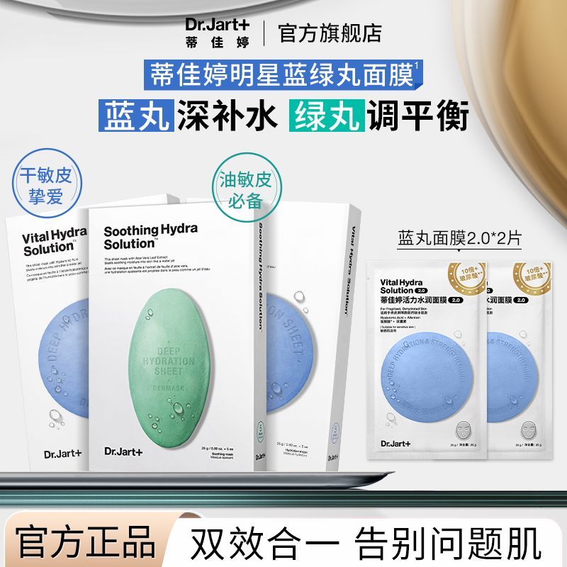 Dr.Jart+ 蒂佳婷 蓝丸补水锁水绿丸舒缓修护面膜17片水油平衡[经销商] 拼多多[产品售价] ¥61.8元进入购买[#zolsplit_ecb电商推广区域分隔符结束#]