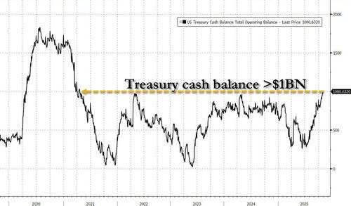 截至上周五,财政部一般账户(TGA)余额首次突破1万亿美元,创2021年4月以来近五年新高。这意味着在过去三个月内,财政部从市场吸走超过7000亿美元现金——从7月的约3000亿美元飙升至当前水平。