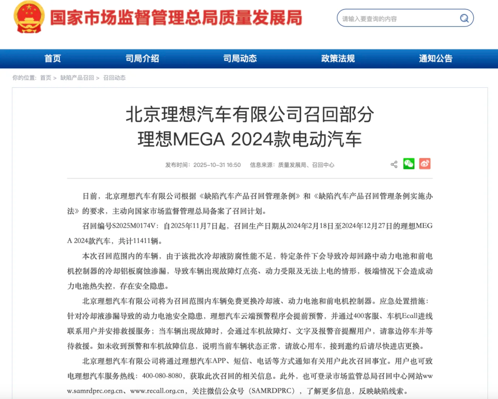 这次召回和前不久上海的一起MEGA自燃事故有关,只不过现在事故还没调查完,理想就站出来承认自己有错误。