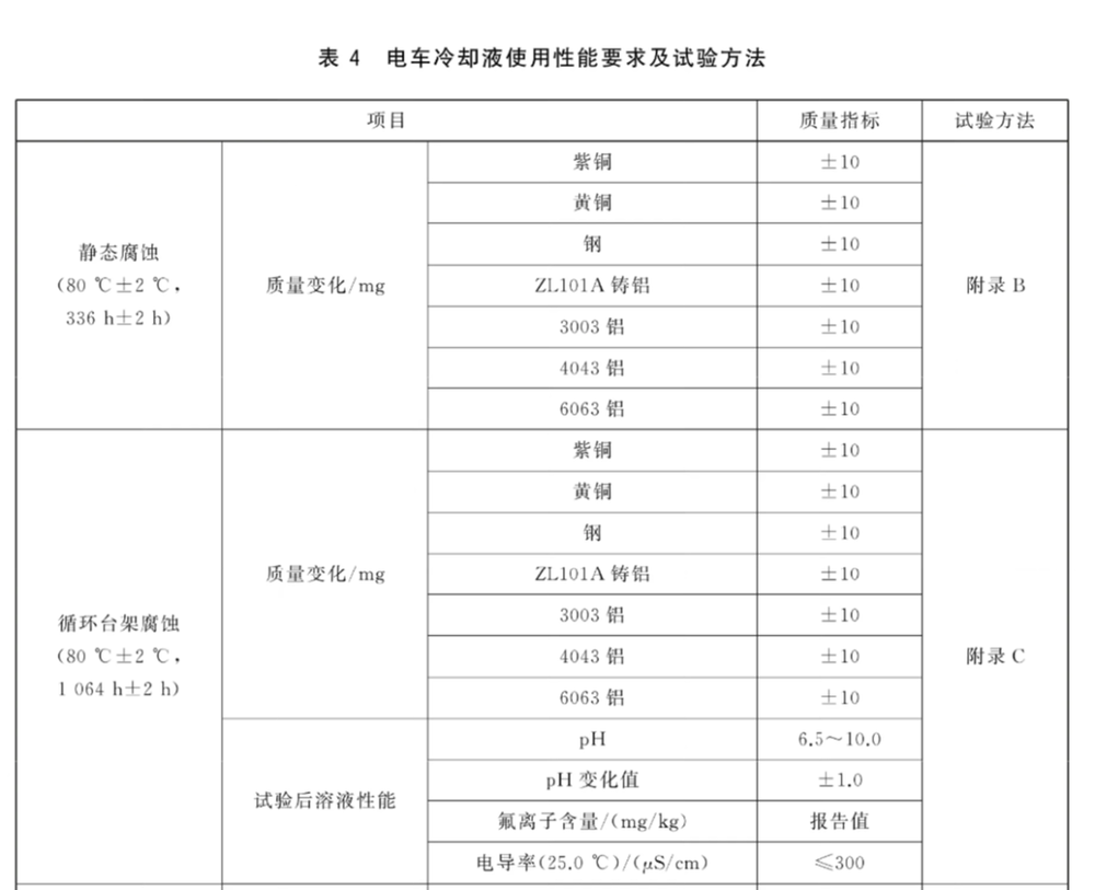 可能也是因为这玩意比较新,所以电车冷却液一直到今年10月份,才有了第一版国标。在这之前,电车冷却液一直用的是13年油车的标准。
