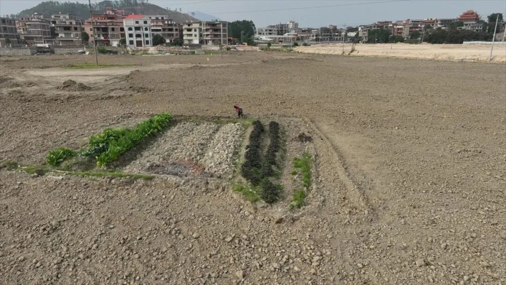剩下的1%是因为还有老人在坚守着自家的田地种蔬菜,结果成为了“钉子田”。