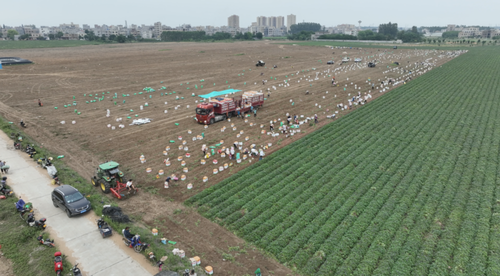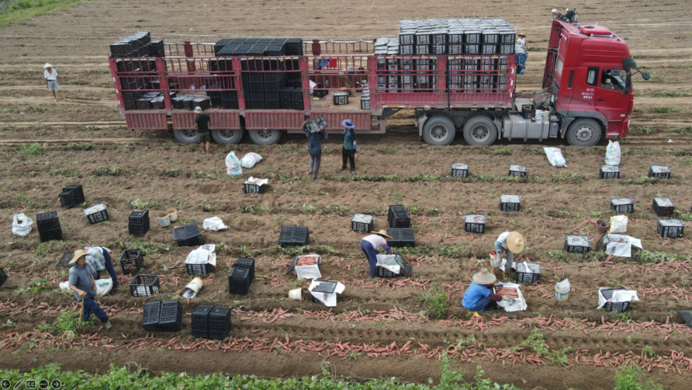 在过去的五年,我就看着家后面的番薯地一年收获两次,每次收获的时候老板就从周边村里雇上百个妇女,在地里把机器挖出来的番薯打包装箱,再送到后面的那辆货车,运到全国各地。