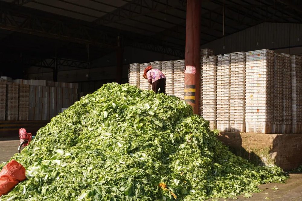 同样的情况,我在云南也遇到了。嵩明县是云南重要的蔬菜基地,2025年3月,我在这里的蔬菜工厂看到了堆积如山的蔬菜。他们走的应该也是精品路线,会把一些没有那么漂亮或者最外层的蔬菜给剥出来。