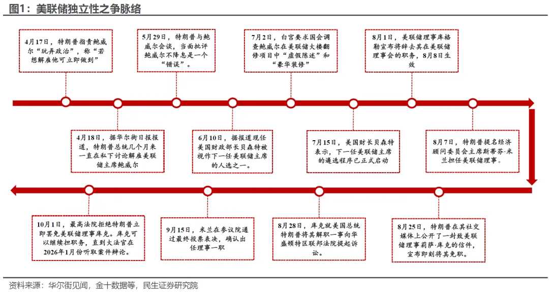 其次,将核心精力转向掌控美联储理事会多数席位,目前特朗普阵营已占据3席,仍需1席即可形成多数。而明年1月的库克案将成为关键节点,同时需密切关注其对现任主席鲍威尔及其他理事的进一步施压或替换动作;