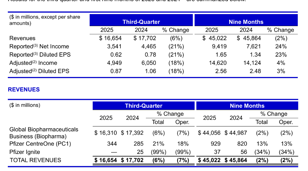 辉瑞对2025年全年收入的指引维持在610亿至640亿美元不变,但预计全年调整后每股收益3-3.15美元,此前预计2.9-3.1美元。公司将此归因于“稳健的年初至今表现、对业务的持续信心、成本改进举措的进展以及有效税率的改善”。