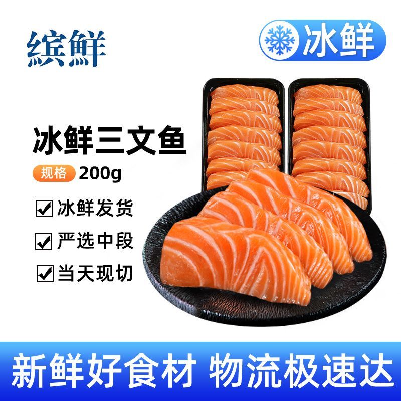 缤鲜 冰鲜三文鱼切片中段商用现切生鱼片鱼腩切片寿司200g/盒*2[经销商] 拼多多[产品售价] ¥29.5元进入购买[#zolsplit_ecb电商推广区域分隔符结束#]