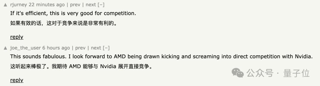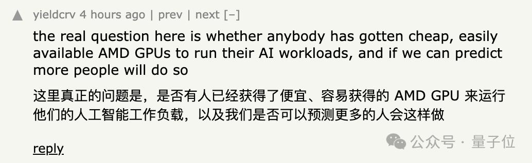 更有网友认为,英伟达一家独大的原因是AMD不愿意投资让其GPU拥有更高的机器学习性能(而不只是拥有CUDA这一个优势)。