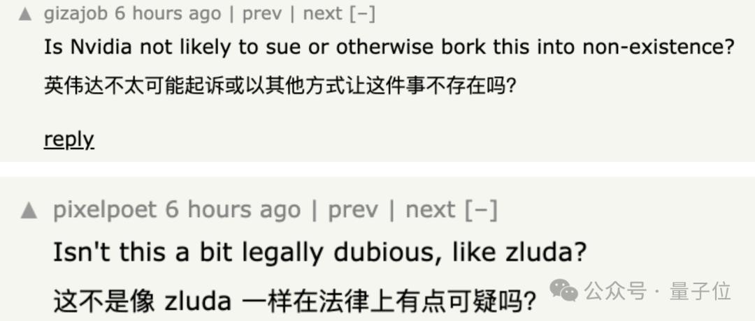 有人认为SCALE像ZLUDA(另一种在AMD上运行CUDA程序的方式)一样存在法律疑点,有可能招致英伟达的诉讼。